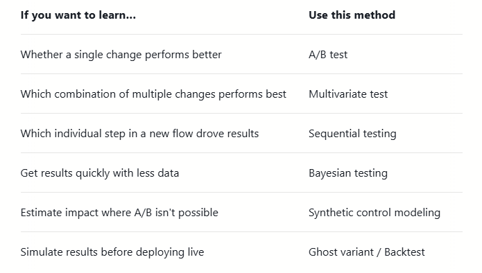 There is no one-size-fits-all approach. The method you choose depends on your goal, your traffic, and how confident you need to be in the result.